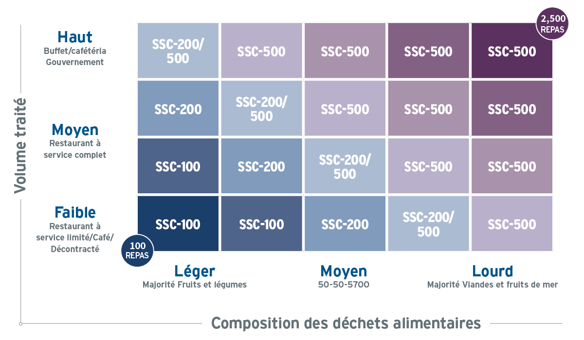 Que vous serviez 25 ou 2 500 personnes, il existe un broyeur à déchets commercial InSinkErator conçu pour votre activité. Du modèle SSC-100™ de faible capacité à notre modèle SSC-500™ de grande capacité, les broyeurs InSinkErator offrent des performances supérieures, une efficacité énergétique maximale et un service fiable.